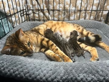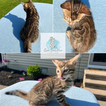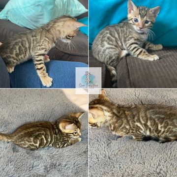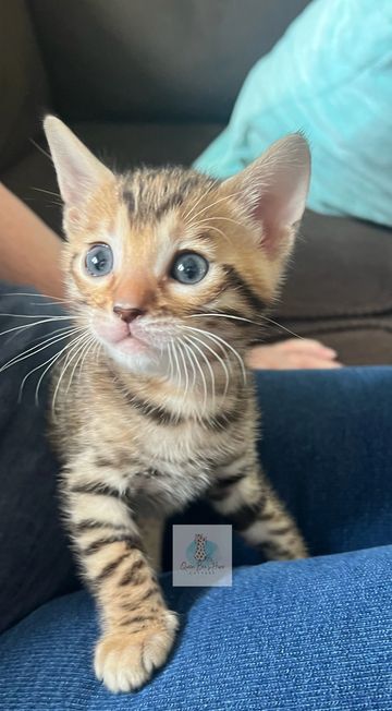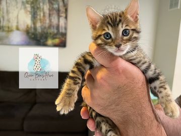 Rosetted brown bengal with warm tones. He's a petite fella and so sweet.